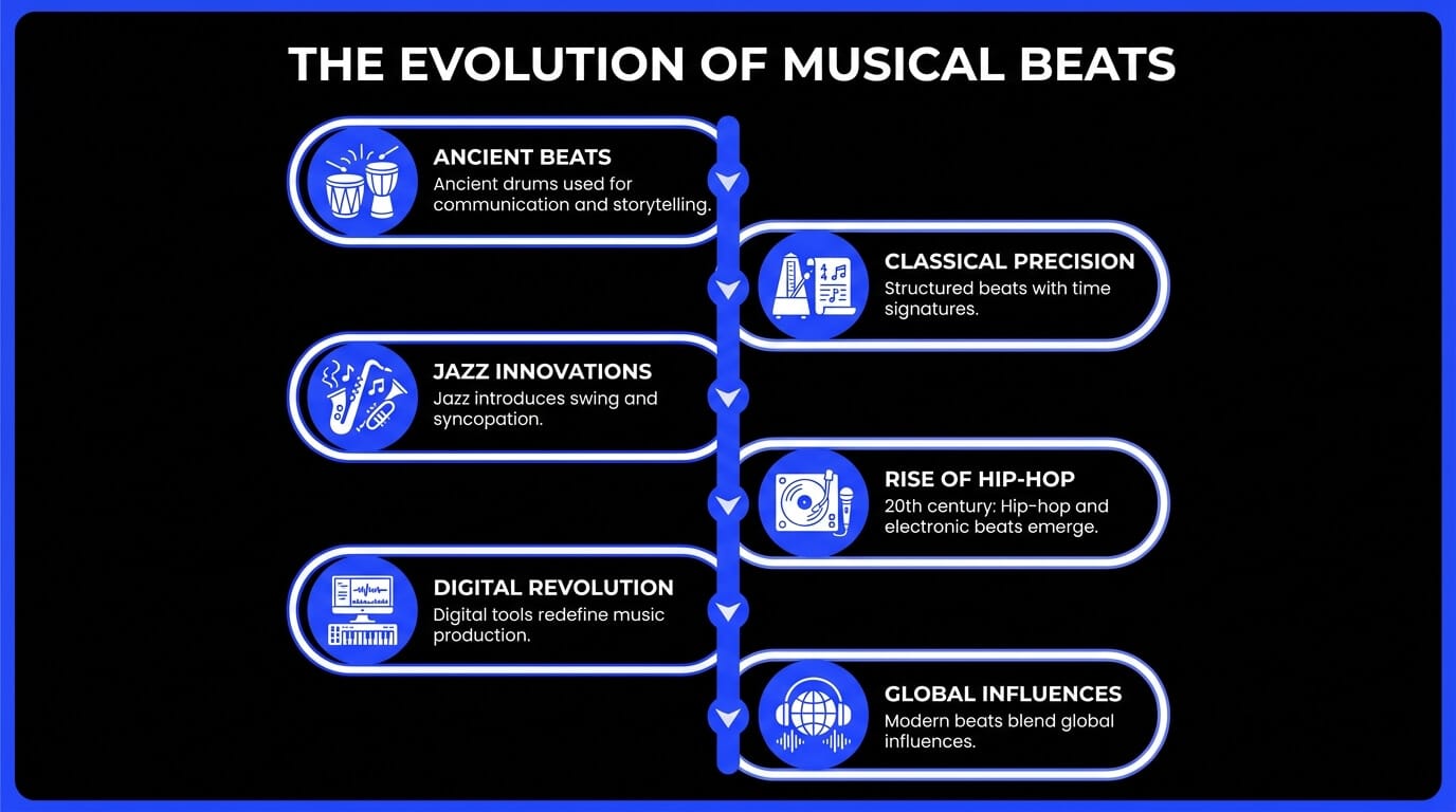 When exploring the evolution of beats in music, it helps to see them not just as timing tools, but as reflections of culture and history. In early human societies, rhythm began with simple percussion—like the tribal drumming traditions found across Africa—where beats were used to communicate, celebrate, and tell stories. These complex rhythmic patterns laid the groundwork for many modern musical styles, showing that the beat has always been deeply tied to human expression.